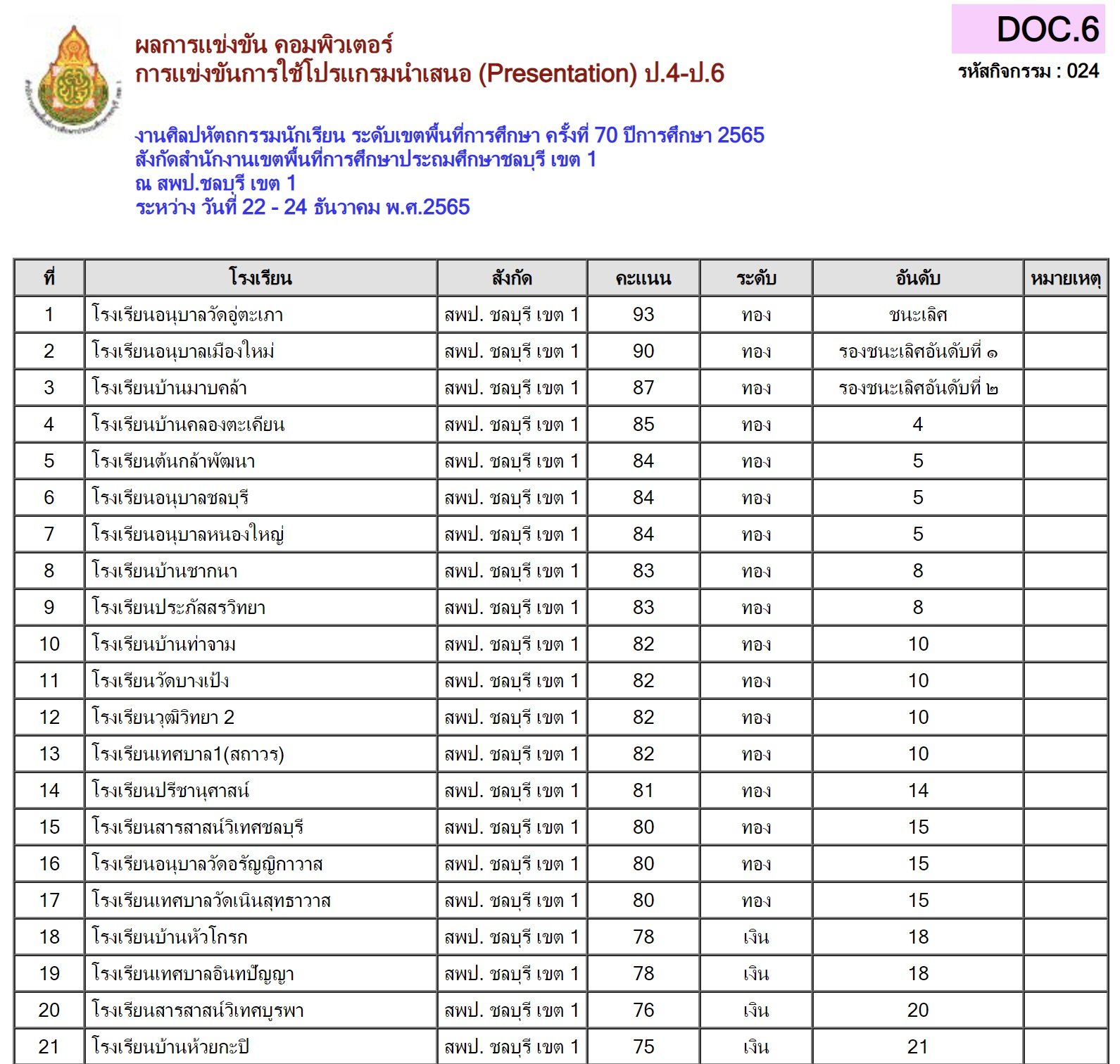 ครั้งที่ 70 ปีการศึกษา 2565 สพป.ชลบุรี เขต 1