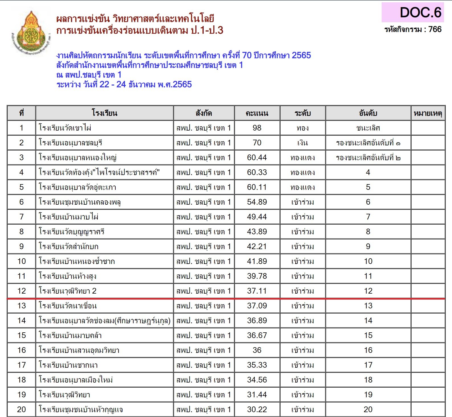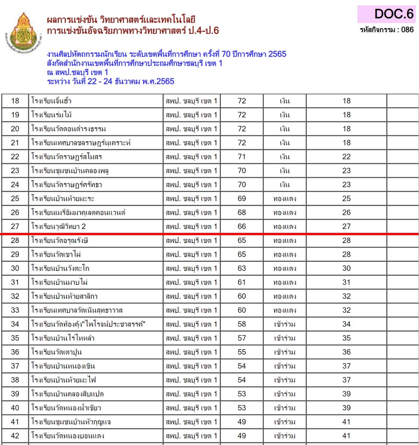 ครั้งที่ 70 ปีการศึกษา 2565 สพป.ชลบุรี เขต 1