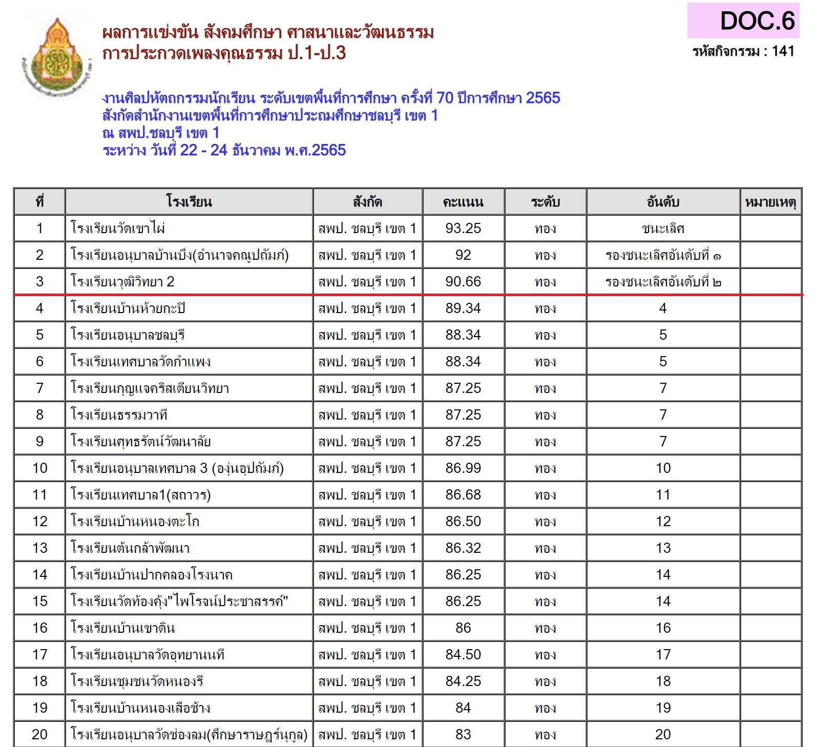 ครั้งที่ 70 ปีการศึกษา 2565 สพป.ชลบุรี เขต 1