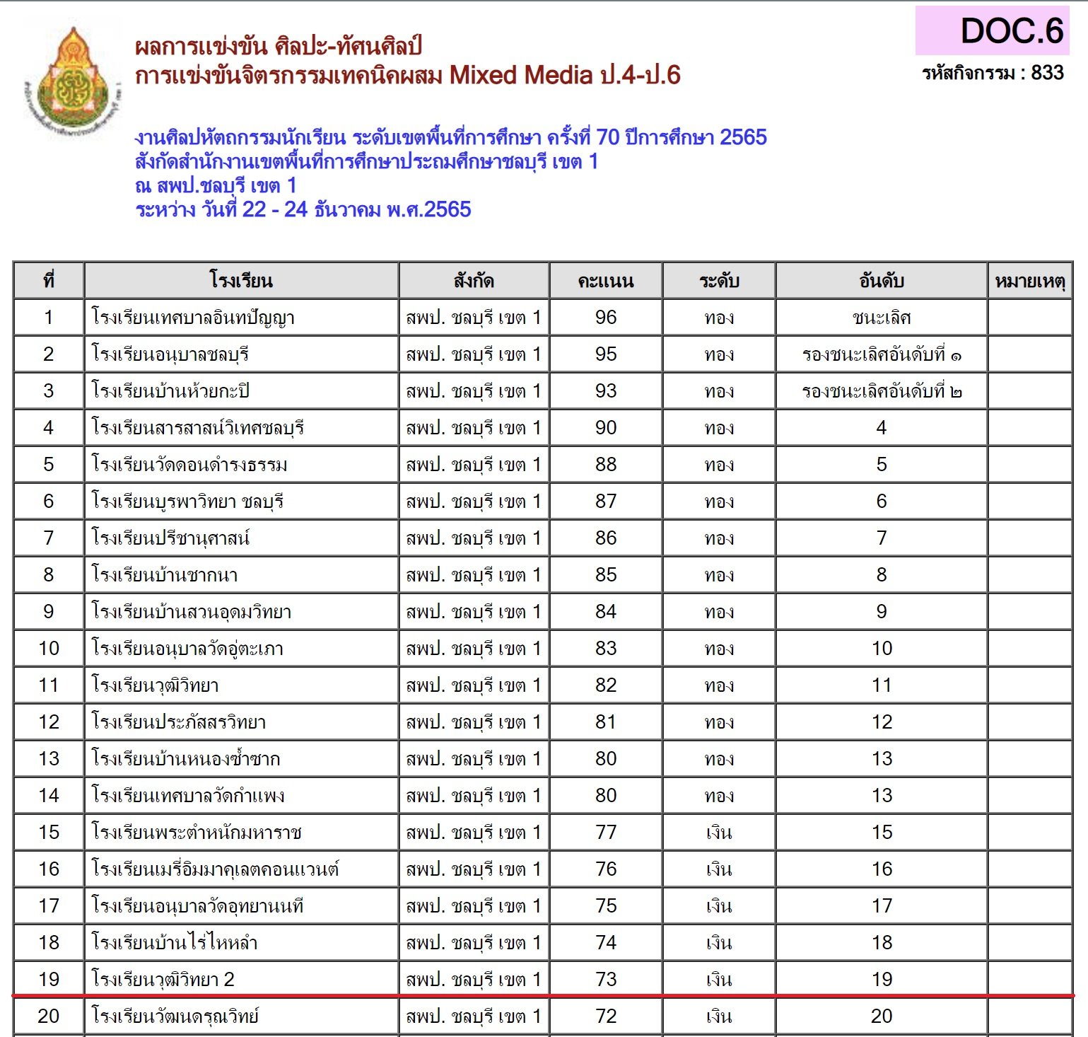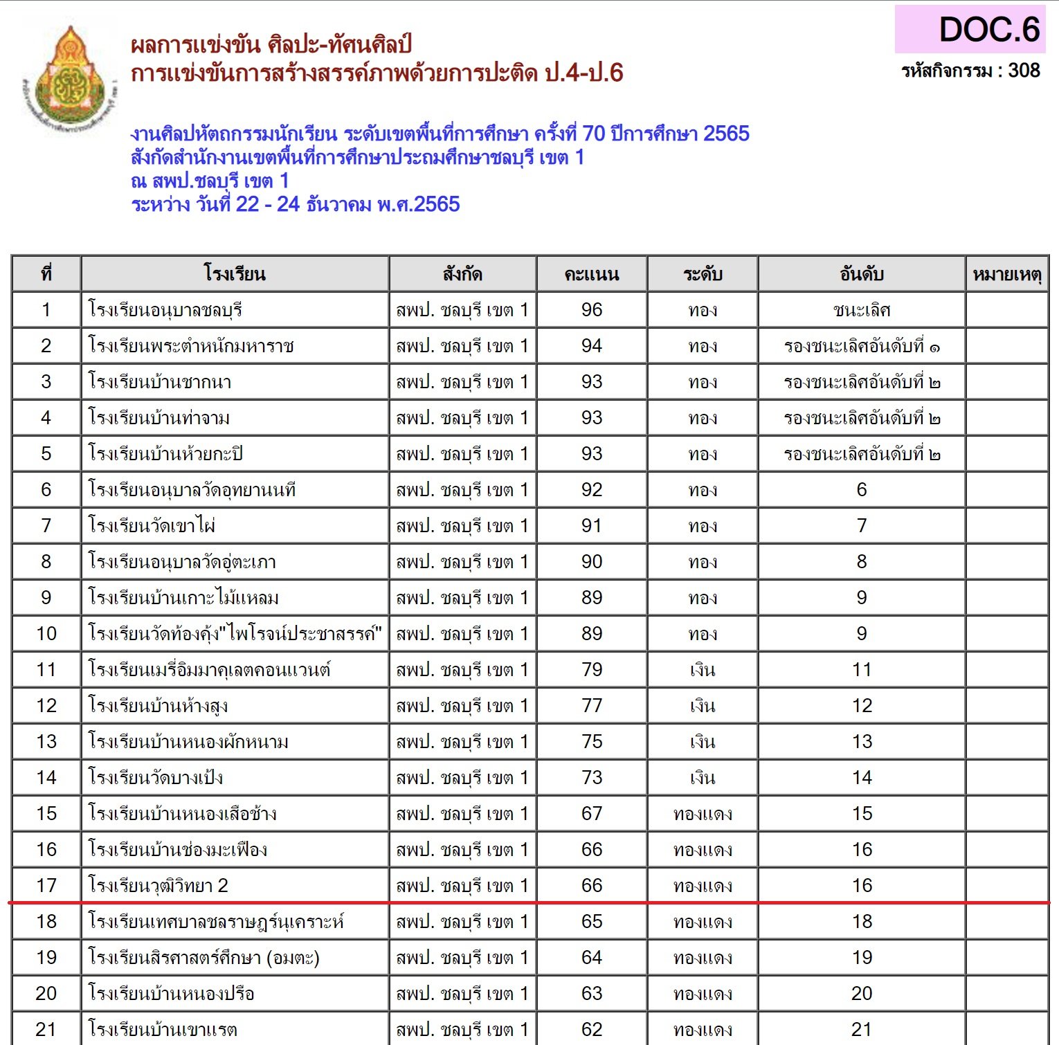 ผลการแข่งขันรายการศิลปหัตถกรรม ระดับเขตพื้นที่การศึกษา