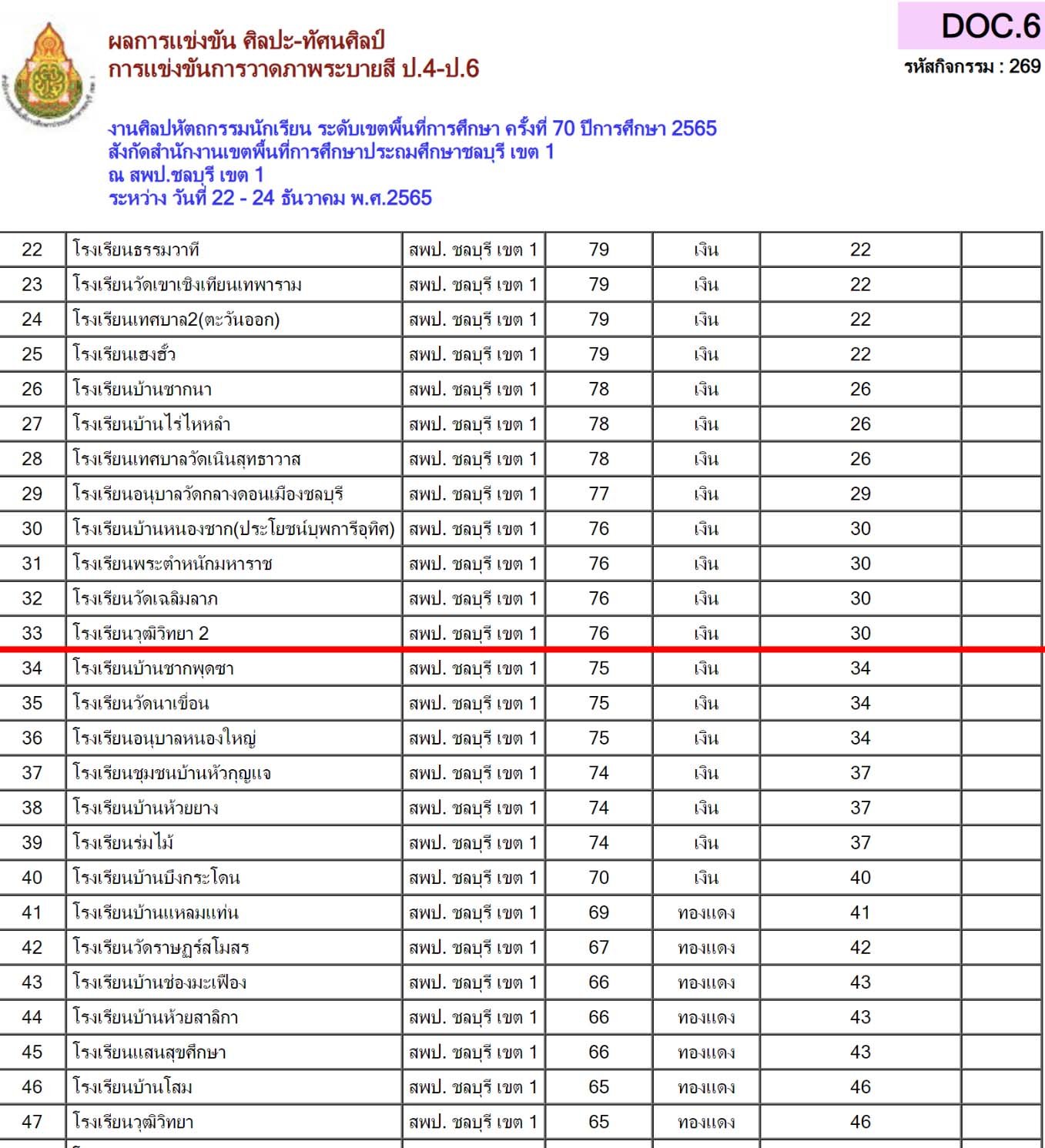 ครั้งที่ 70 ปีการศึกษา 2565 สพป.ชลบุรี เขต 1