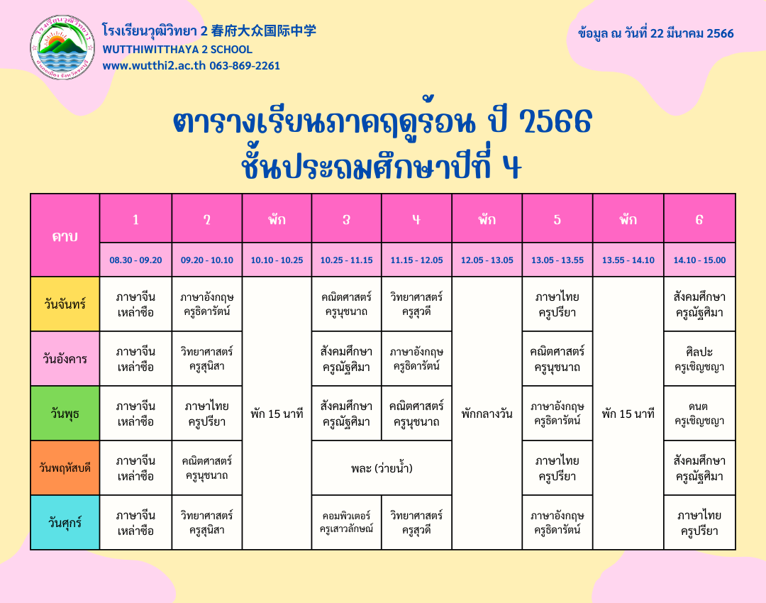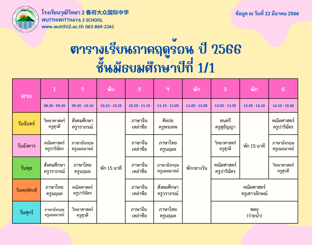 ตารางเรียนภาคฤดูร้อน ปี2566 โรงเรียนวุฒิวิทยา2