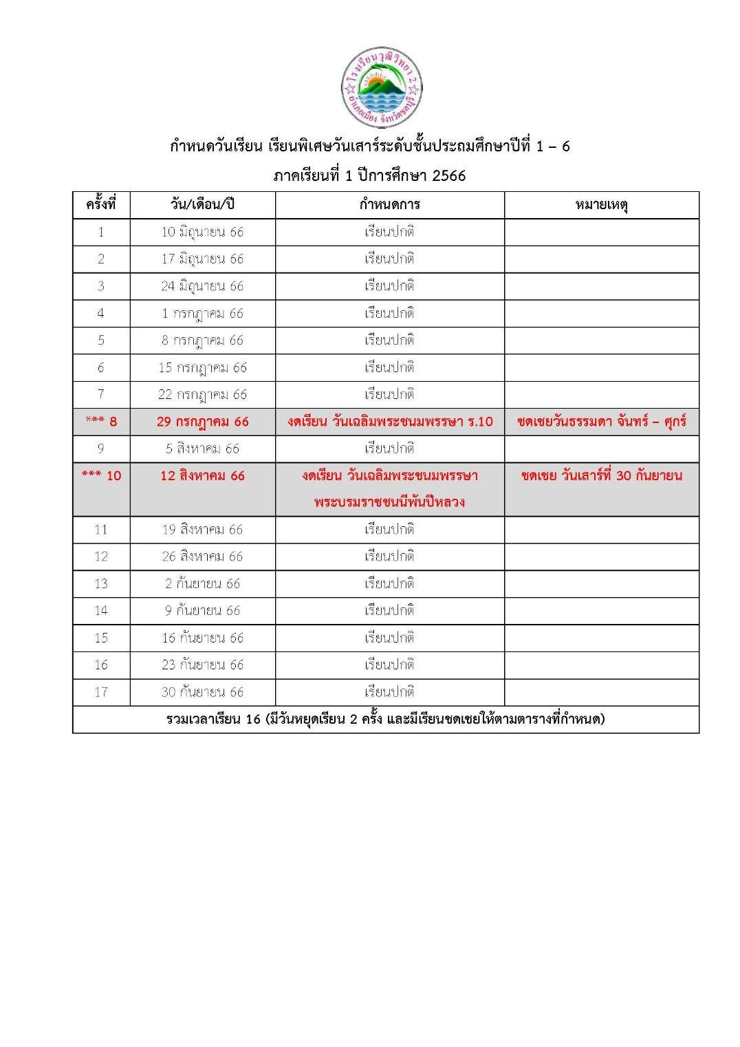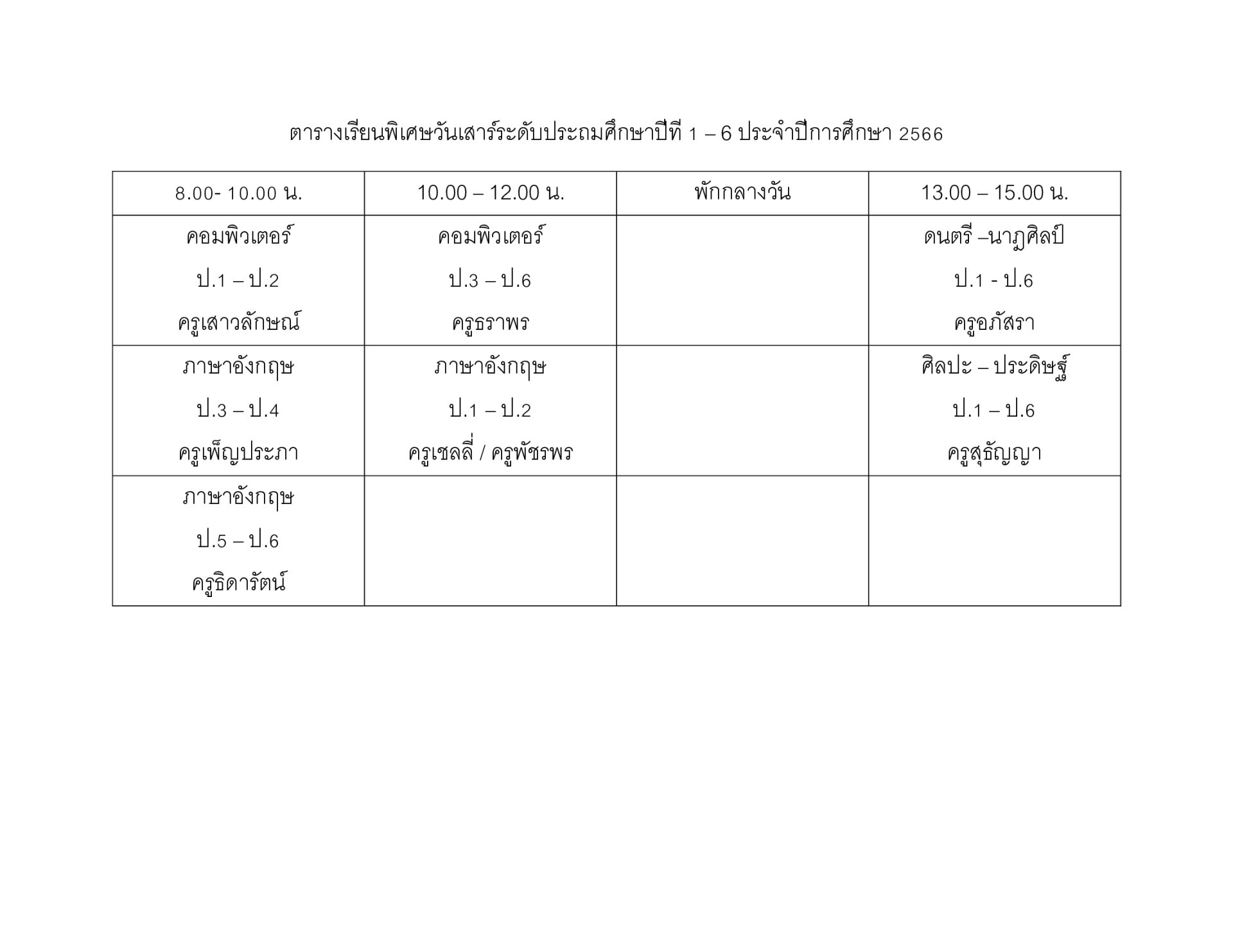 ประชาสัมพันธ์ การเรียนพิเศษวันเสาร์